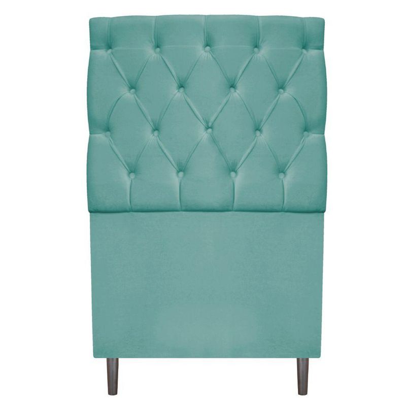 Kit Cabeceira E Calçadeira Liverpool 90 Cm Solteiro Suede Azul Tiffany - Doce Sonho Móveis