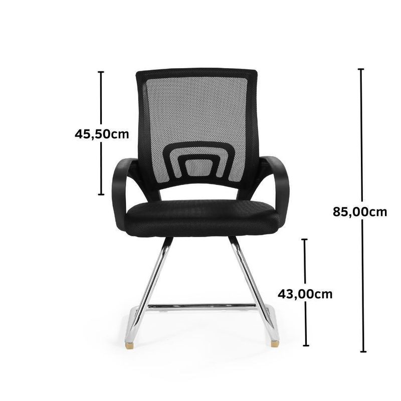 Dimensões Cadeira de Escritório Secretária Base Fixa:> Altura Total(cm): 85,00> Altura do encosto(cm): 45,50> Altura do Chão ao Assento(cm): 43,00> Largura do Assento(cm): 48,50> Profundidade Assento(cm): 48,50> Largura Braço a Braço(cm): 54,00