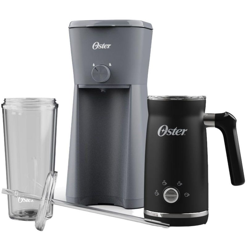 Kit Café Gelado - Cafeteira Iced Coffee e Espumador de Leite Elétrico 220VEsse kit contém os seguintes itens:Cafeteira para Café Gelado Oster Iced Coffee 600ml - OCAF820Com a cafeteira Iced Coffee Oster, apreciar um delicioso café gelado é uma sensação que você pode ter em qualquer momento e em qualquer lugar. Recrie seus cafés especiais e favoritos em casa, de forma descomplicada e sustentável.Iced Coffee On The Go: Copo de 600ml com parede dupla, tampa e canudo para você levar o seu café para onde quiser e mantê-lo delicioso por muito mais tempo.