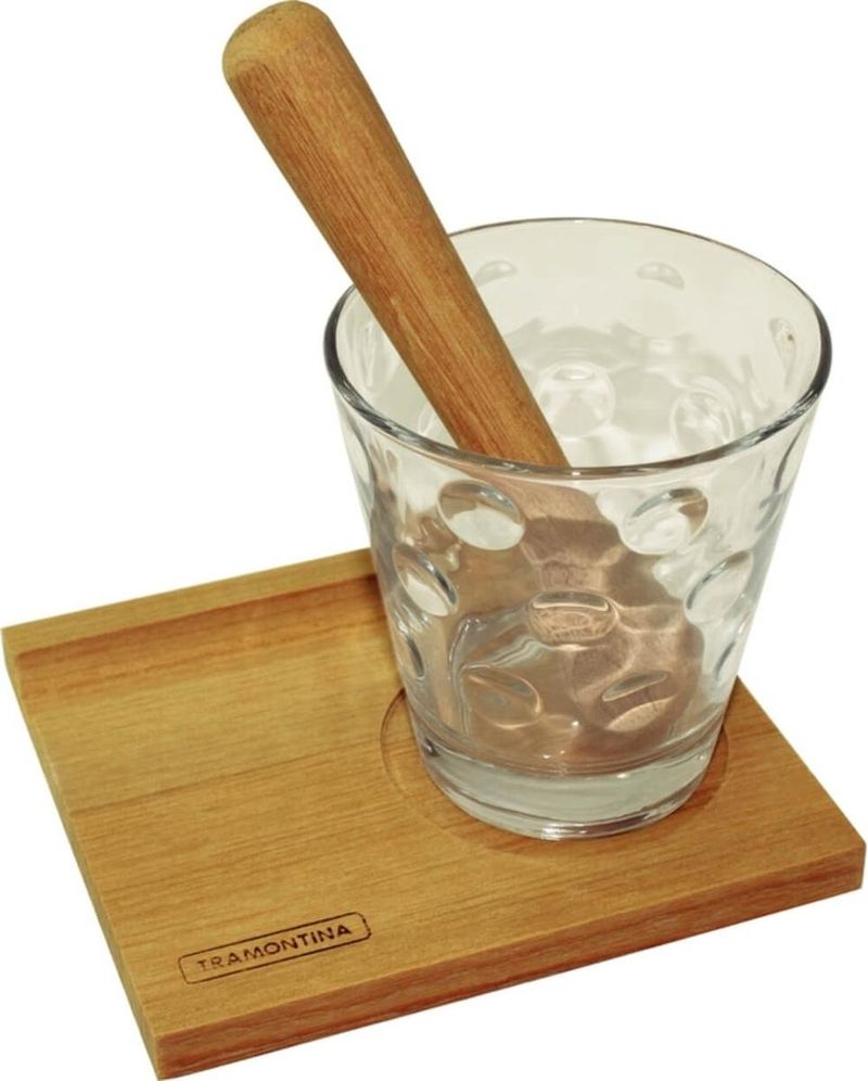 - madeira: Goiabão- Acabamento: Polido- Copo: vidro- Amassador em madeira