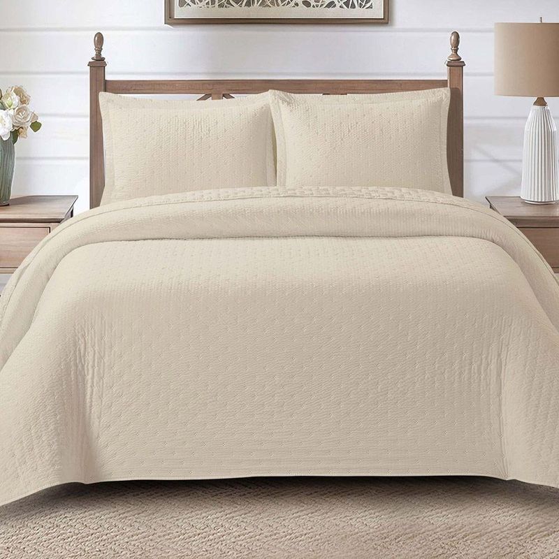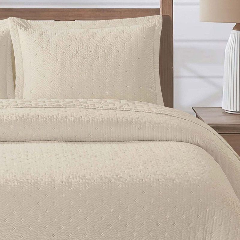 Kit Cobre Leito Colcha Casa Scarpa Anabela Queen Dupla Face Texturizado Percal 300 Fios 3 Peças - Bege - 100% Poliéster