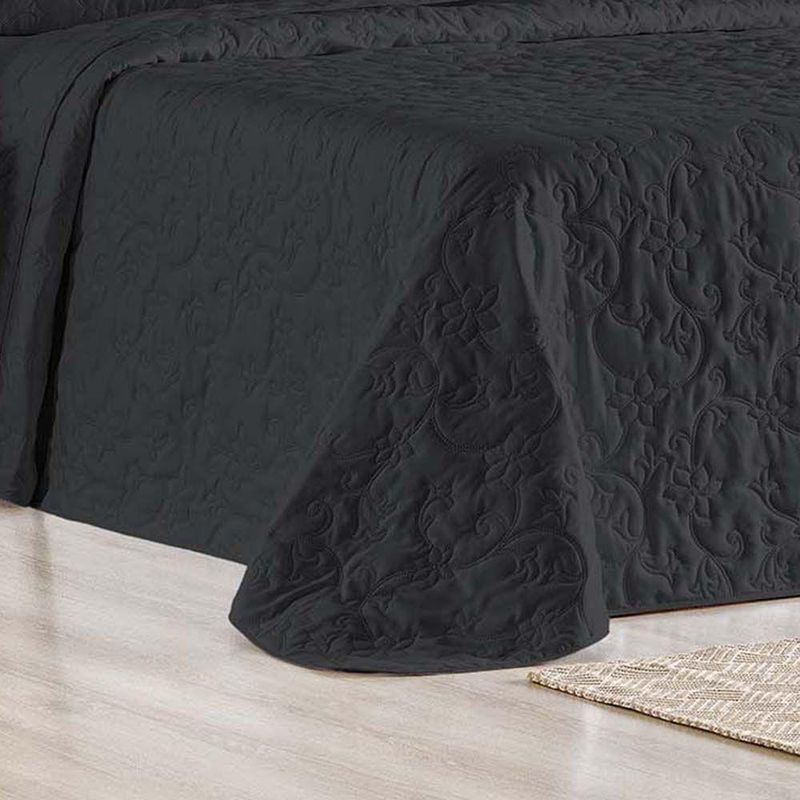 Kit Cobre Leito Colcha Celeste Queen 3 Peças Matelado Floral 180 Fios - Preto