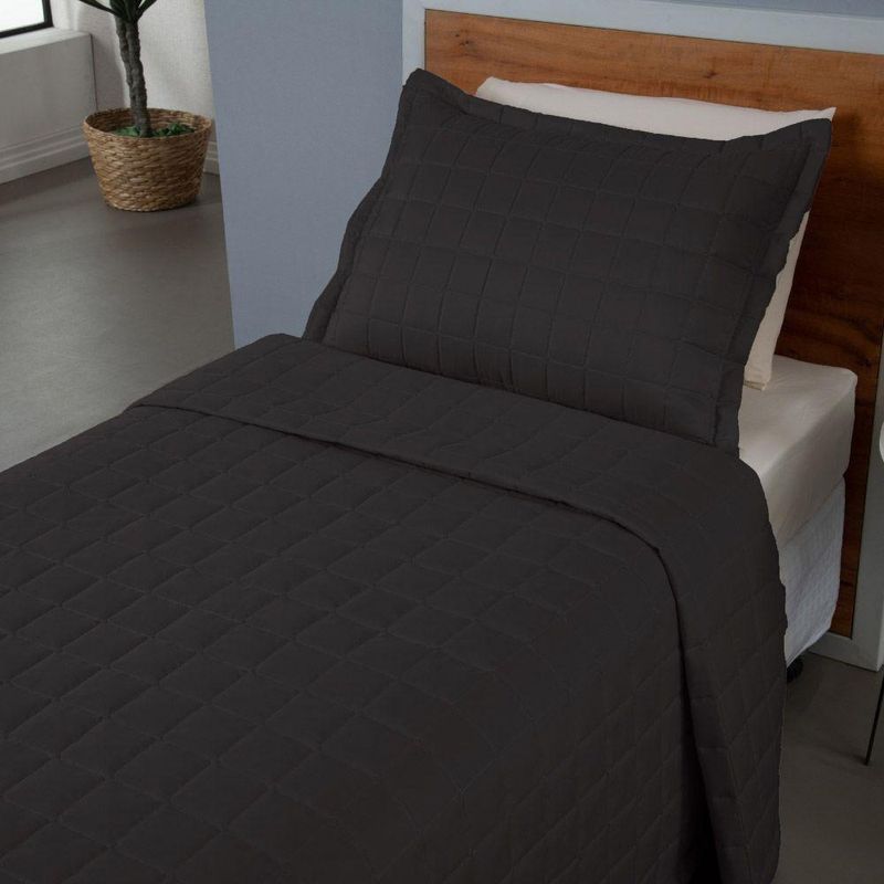 Kit Cobre Leito Colcha Dual Solteiro 2 Peças Matelado Dupla Face Liso - Preto - 100% Poliéster