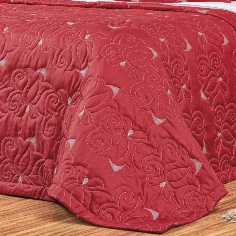 Kit Cobre Leito Colcha Marie King 3 Peças Bordado Floral 180 Fios - Vermelho