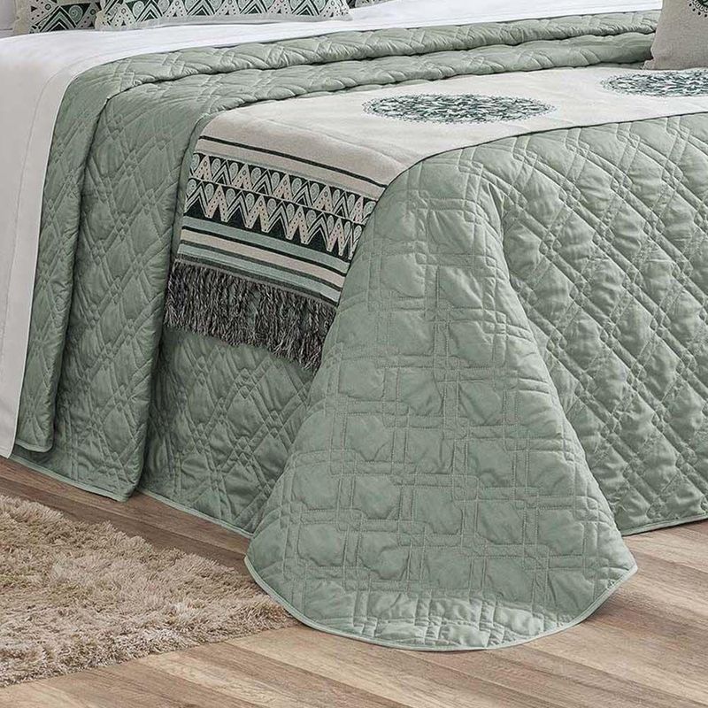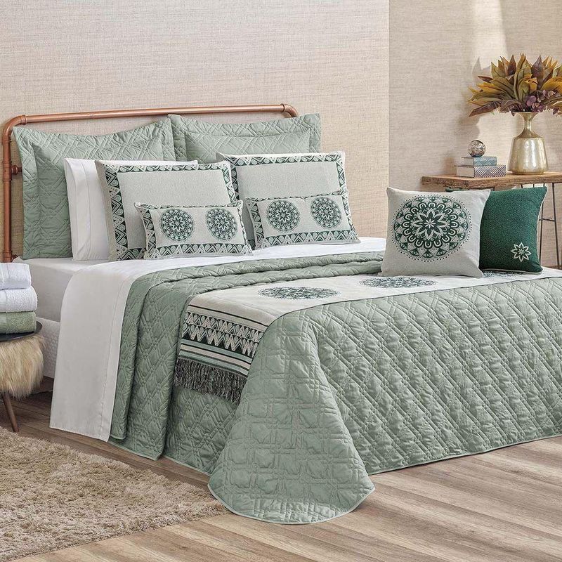 Kit Cobre Leito Colcha Tierry Queen 5 Peças Hipercal 180 Fios - Verde Malva