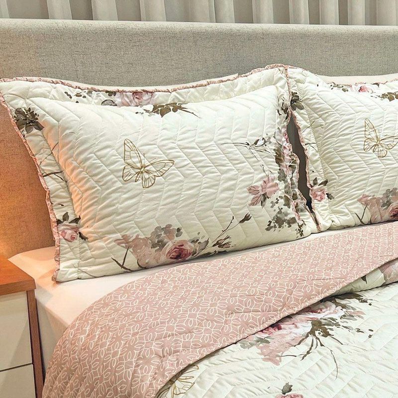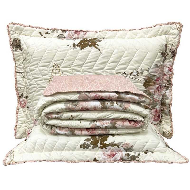 Kit Cobre Leito Colcha Topázio Queen Dupla Face 3 Peças - Palha - 100% Poliéster