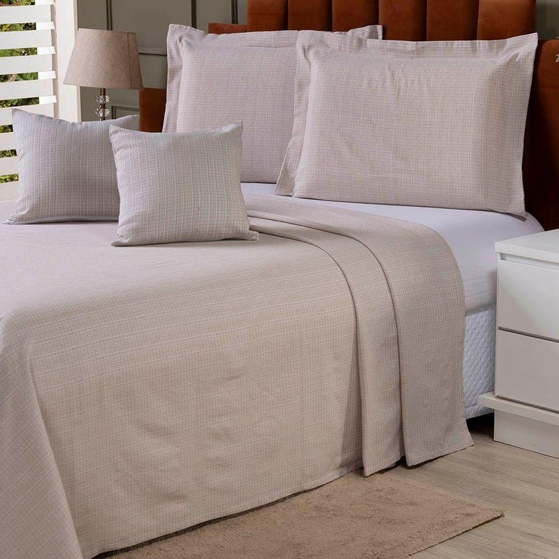Kit Cobre Leito Colcha Usual Queen 5 Peças Tecido Rústico C/ Almofada - Avelã - 60% Algodão / 40% Poliéster