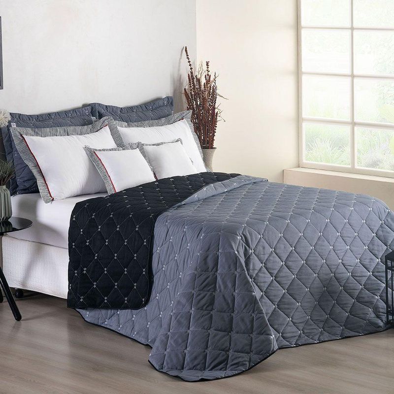 Kit Cobre Leito Dupla Face Casal Queen Bordado Renove 7 Peças Hipercal 400 Fios 100% Poliéster - Cinza