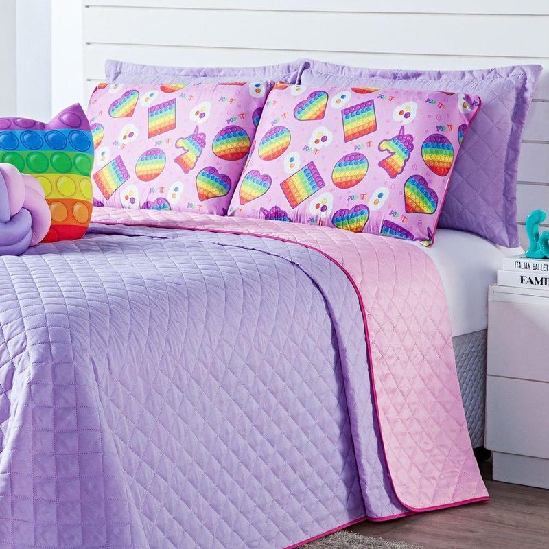 Kit Cobre Leito Pop It Dupla Face C/ Almofadas Casal Padrão 08 Peças