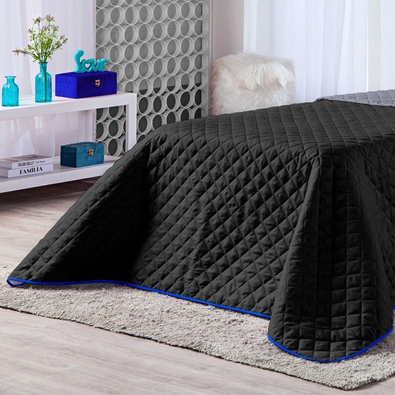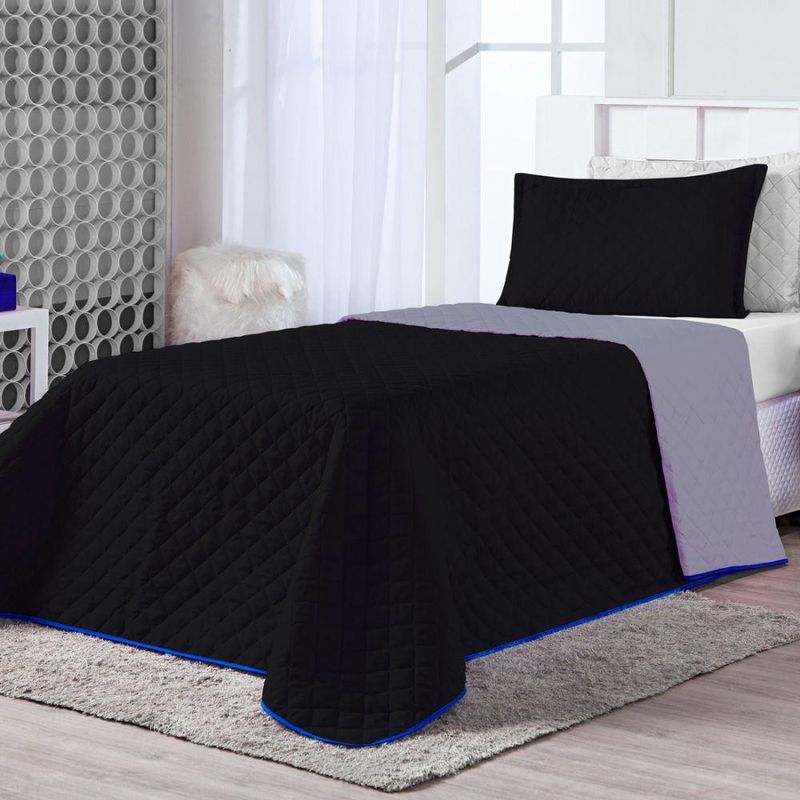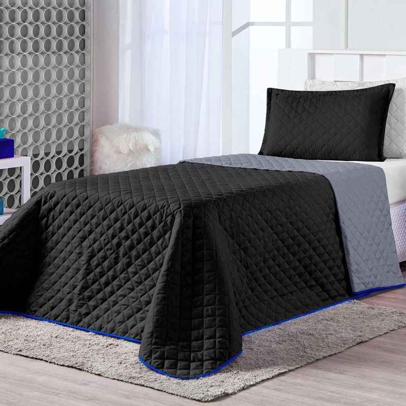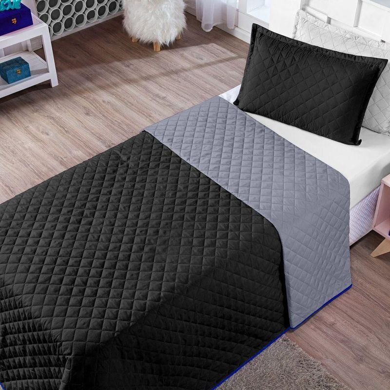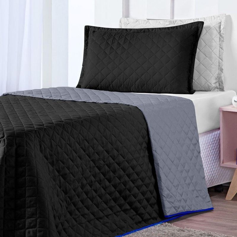 Kit Cobre Leito Dual Color Preto/cinza Solteiro 02 Peças - Dupla Face