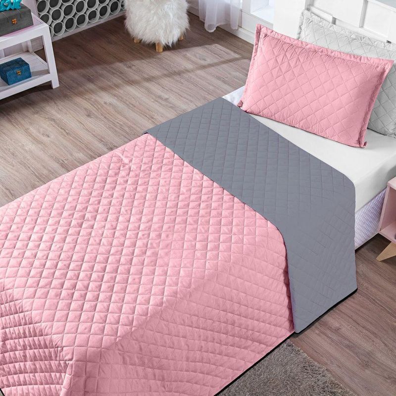 Kit Cobre Leito Dual Color Rosa/cinza Solteiro 02 Peças - Dupla Face