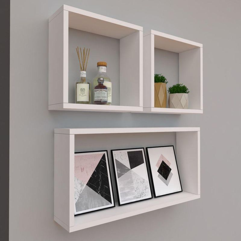 Kit com 3 nichos decoração para Sala Retangular Cor: BrancoComposição do Kit: