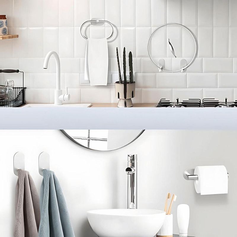 - Instalação por adesivo 3M resistente até 6 kgs por peça, sem danificar a parede (aguardar 48 hrs para uso após instalação)Kit de 5 acessórios de banheiro