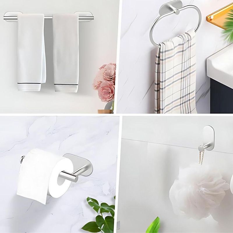 Kit com 5 acessórios de banheiro feito em inox, de alta qualidade.Ideal para tornar seu banheiro completo, elegante e organizado.Com nossos acessórios, a instalação é simples e não há necessidade de danificar a parede.Características:
