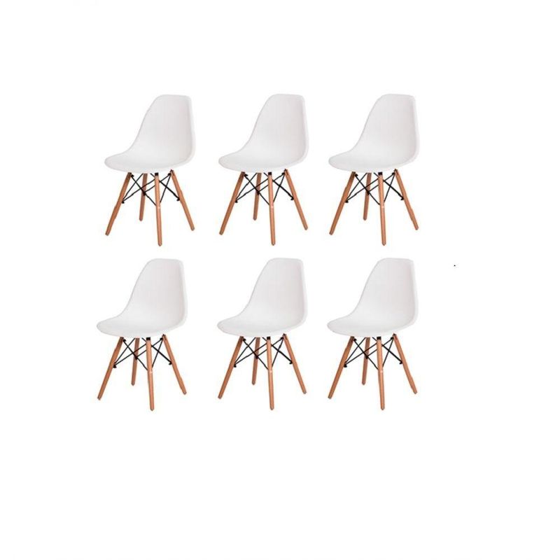 Kit Com 6 Cadeira Charles Eames Wood Dsw Branca - Base Madeira