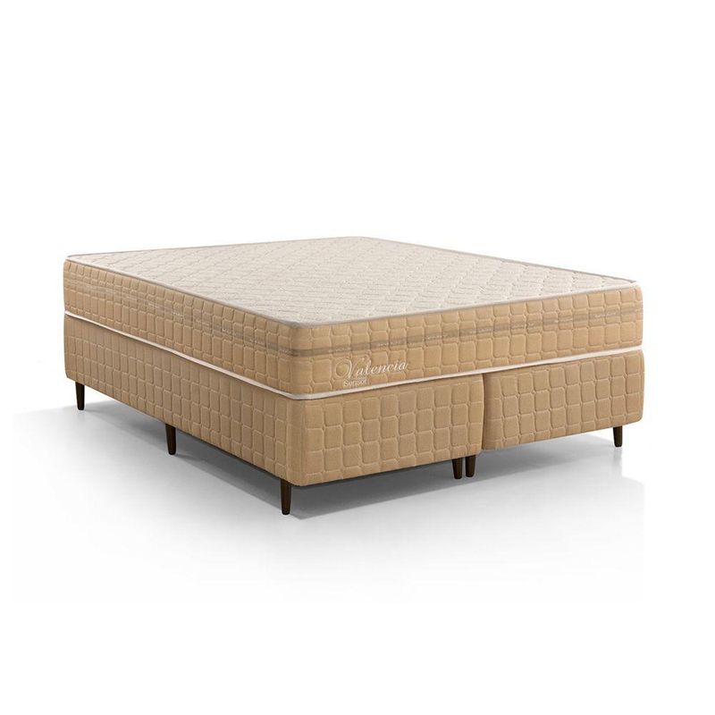 Kit Conjunto Colchão Queen Valência Molas Ensacadas Individualmente + Box Blindado 158x61x198 - Bege