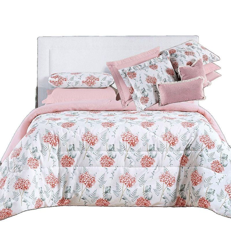 Kit Coordenado Edredom E Cobre Leito Sensuale Super King Hortência 4 Peças - 80% Algodão, 20% Poliéster