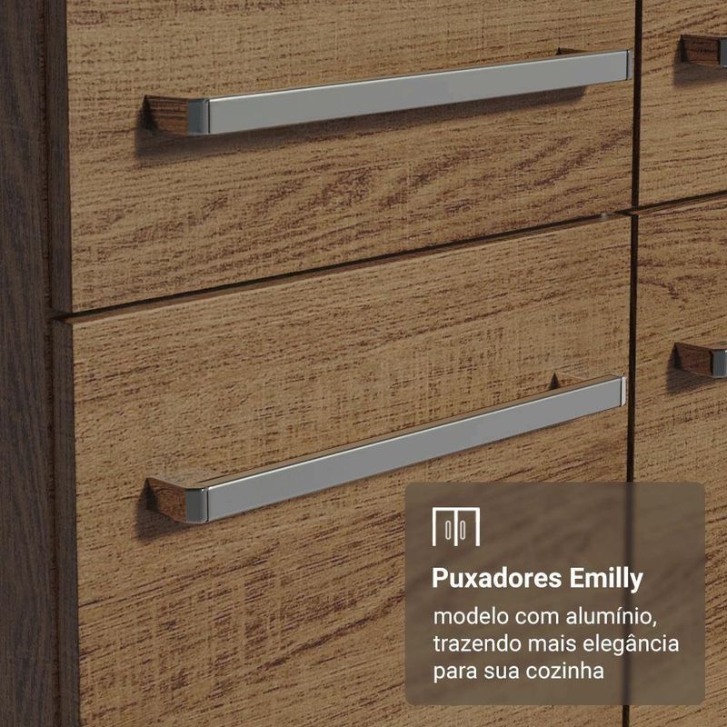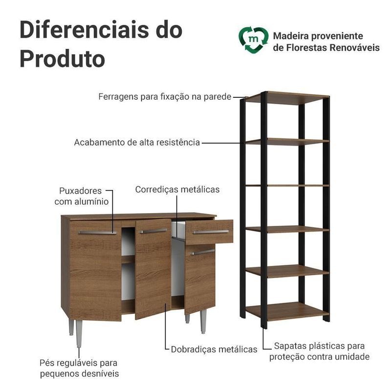 Com um design moderno e funcional, este móvel é ideal para armazenar utensílios, mantimentos e eletros de forma organizada.