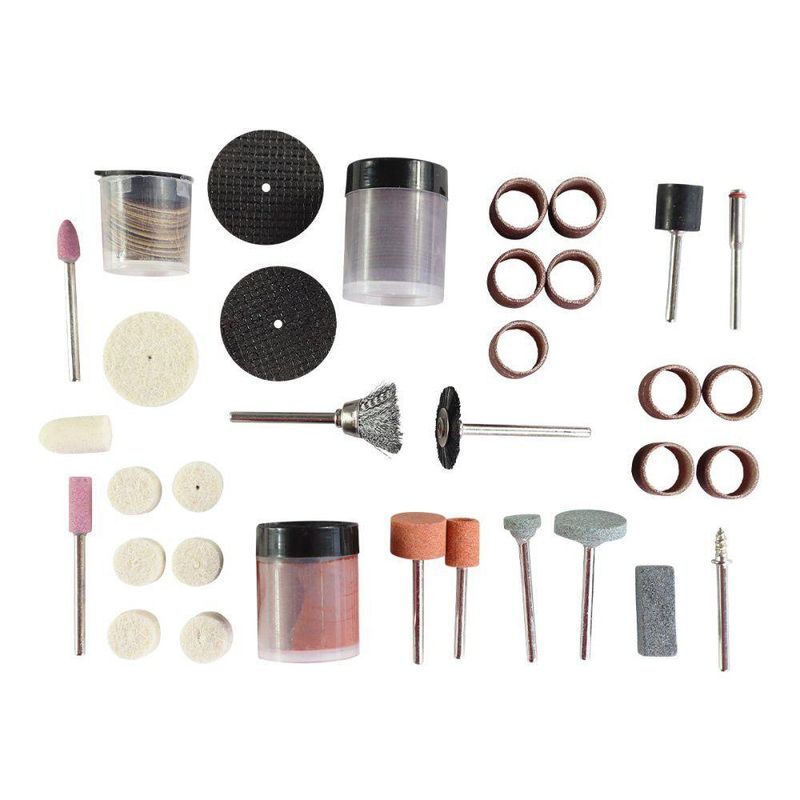 Feito para transformar sua retífica em uma ferramenta versátil e poderosa, esse kit será uma ótima escolha para trabalhos em casa ou uma variedade de discos, rebolo, lixas e diversos outros acessórios, o kit oferece tudo o que precisa para diversas aplicações, seja trabalhos mais complexos para profissionais até os mais simples para os iniciantes.Produzidos com materiais de alta qualidade, garante uma ótima durabilidade e resistência nos serviços, além de acompanhar recipientes para organizar melhor a sua área de trabalho. Conta com:-01 Haste de rebolo - 43x3mm;-30 Discos de lixa papel - 024,0x0,5mm/;-02 Discos de corte fibra de vidro - 032x1mm/;-43 Discos de corte - 020x0,2mm;-05 Lixas - 0115x12mm, espessura - 1,2mm;-01 Esmeril de borracha - 38x3mm;-04 Lixas - 0155x13mm, espessura - 1,2mm;-01 Escova de limpeza - 44x3mm;-01 Escova de aço - 42x3mm;-01 Disco de feltro - 025x6mm;-01 Ponteira de feltro - 025x6mm;-01 Haste de rebolo - 41x3mm;-06 Discos de feltro - 125x6mm;-01 Pasta de polimento - 6ml;-01 Rebolo c/ haste - 41x3mm;-01 Rebolo c/ haste - 43x3mm;-01 Rebolo c/ haste - 39x3mm;-01 Rebolo c/ haste - 40x3mm;-01 Pedra de afiar - 25x9mm;-01 Mandril p/ disco de feltro - 37x3mm;-01 Mandril p/ disco de feltro - 37x3mm. ESPECIFICAÇÕES:Material: Aço Carbono, Carboneto de Silício Papel, Resina Encapada, Fibra de Vidro, Lá, Óxido de Alumínio, Borracha, Aço Inox, Poliéster, Pasta de Polimento: (Óxido de Cromo e Alumina, Ácido Esteárico, Monoglicerídeo, Cera de Abelha, Cera de Parafina, Lanolina)Peso: Aprox.: 140g CONTÉM:01 KIT DE ACESSÓRIOS PARA RETÍFICA 105 PEÇAS