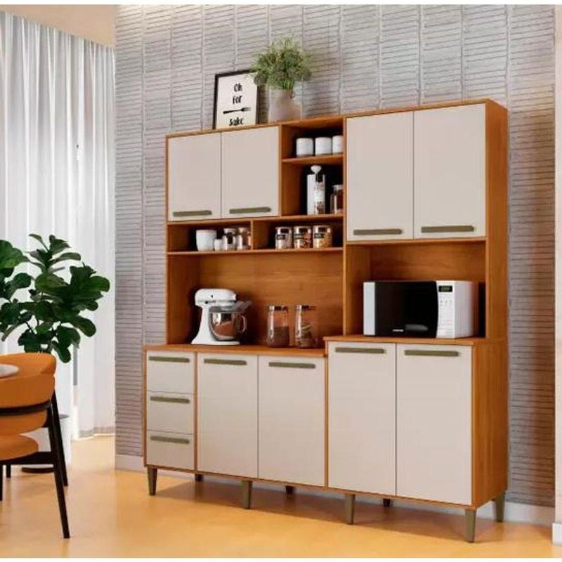 Kit De Cozinha São Luís 8 Portas 3 Gavetas Kaiki Móveis - Nature/off