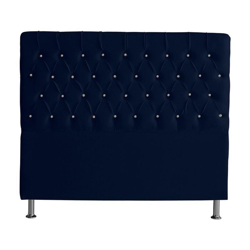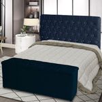 Kit De Quarto Cabeceira De Cama E Calçadeira Baú Bella Casal 140 Cm Suede Botão Strass Azul Eli Móveis E Decoração