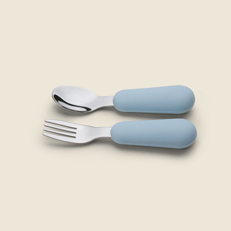 Funcionalidade e estilo para as refeições do dia a dia. O Kit de Talheres da A\CASA é composto por 2 peças — colher e garfo — com cabos em silicone azul e pontas em inox, oferecendo conforto no manuseio e durabilidade no uso.
