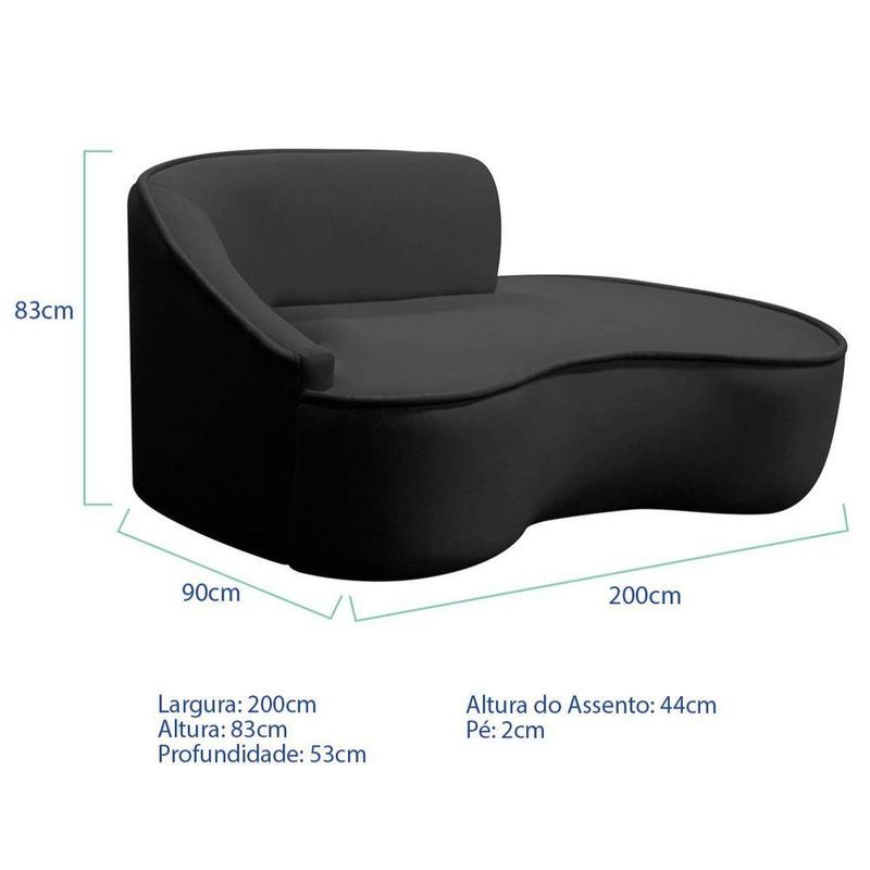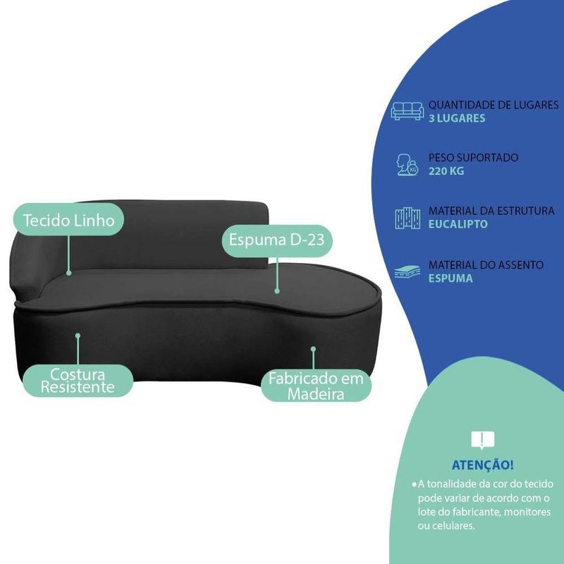 Kit Divã Recamier Orgânico Marrocos 200cm Lado Direito E 2 Poltronas Amore Linho Preto