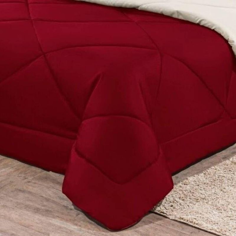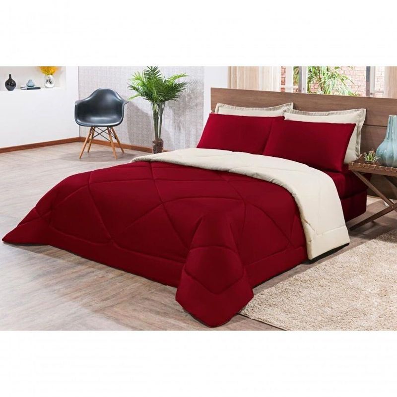 Kit Edredom + Jogo De Lençol Aconchego Look House Dupla Face Solteiro 04 Peças - Vermelho/ Palha