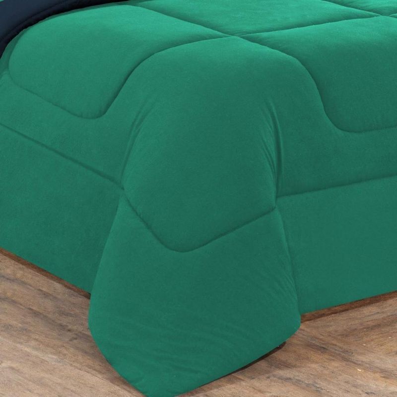 Kit Edredom + Jogo De Lençol Malha 100% Algodão Gran Moratta 4 Peças Solteiro - Verde Jade/azul Marinho