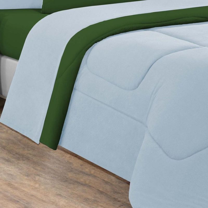 Malha 100% Algodão Fio 30/1 (130 Gramas) Marca: Enxovais Davy | Estampa: Não se Aplica | Medidas: 01 Edredom Solteiro Dupla Face Liso 1,60m x 2,40m01 Porta Travesseiro 70cm x 50cm01 Lençol de Cima 1,60m x 2,40m 01 Lençol de Baixo para Colchão 0,88m x 1,88m x 0,30m (Elástico em toda a volta)01 Fronha 70cm x 50cm | Número de Peças: 05 Peças | Material: Agodão | Cor Predominante: Azul Bebê/Verde Bandeira | Cama Indicada: Solteiro