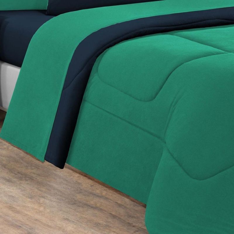 Kit Edredom + Jogo De Lençol Malha 100% Algodão Gran Moratta 5 Peças Solteiro - Verde Jade/azul Marinho