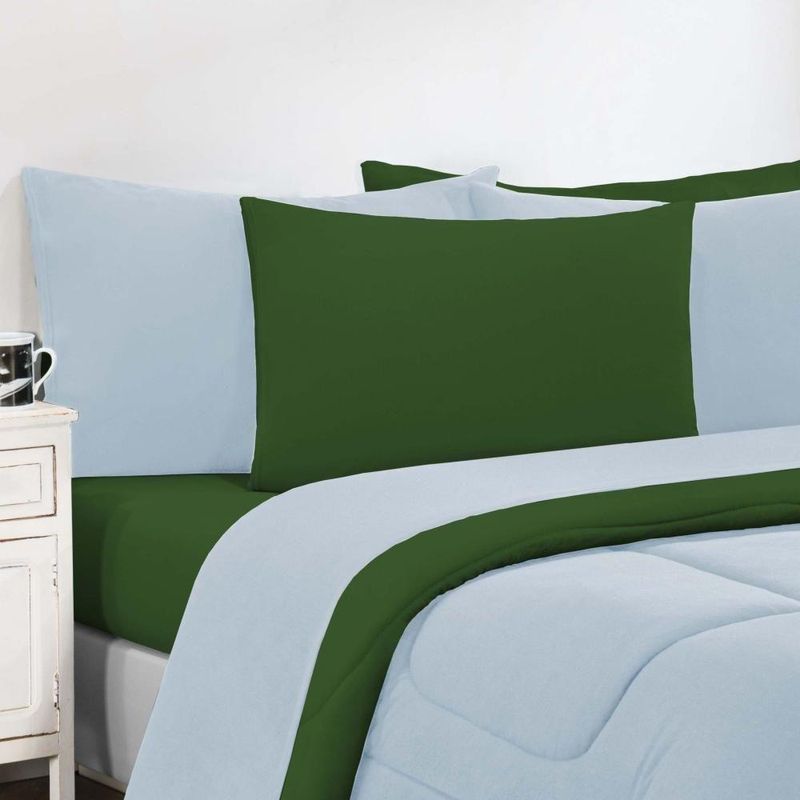 Kit Edredom + Jogo De Lençol Malha 100% Algodão Gran Moratta 6 Peças Queen - Azul Bebê/verde Bandeira