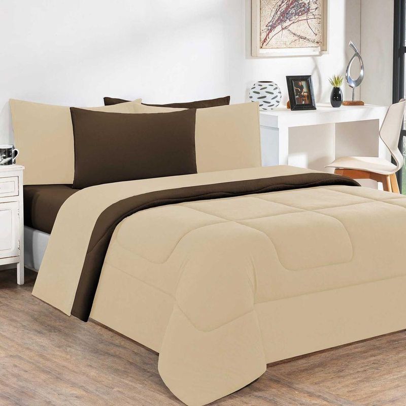 Kit Edredom + Jogo De Lençol Malha 100% Algodão Gran Moratta 6 Peças King - Palha /marrom
