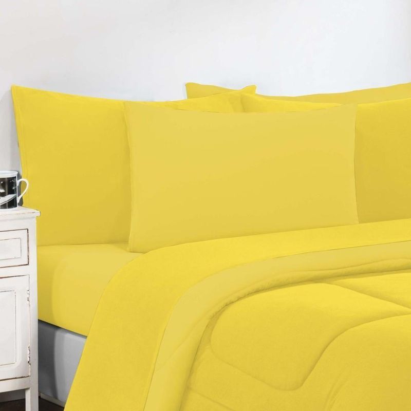 Kit Edredom + Jogo De Lençol Malha 100% Algodão Gran Moratta 6 Peças Queen - Amarelo/amarelo