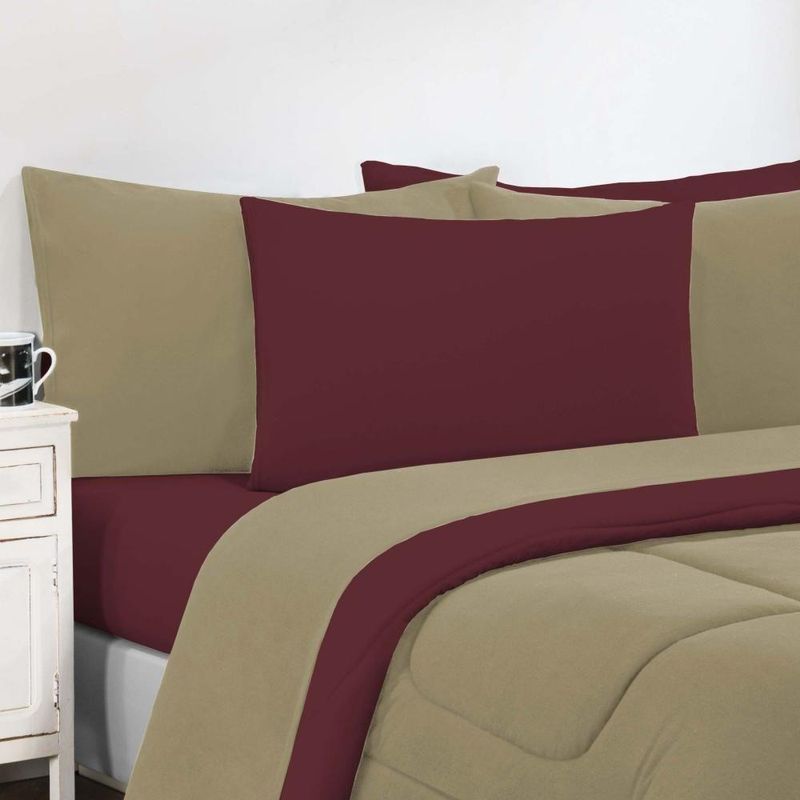 Kit Edredom + Jogo De Lençol Malha 100% Algodão Gran Moratta 6 Peças Queen - Avelã/vinho
