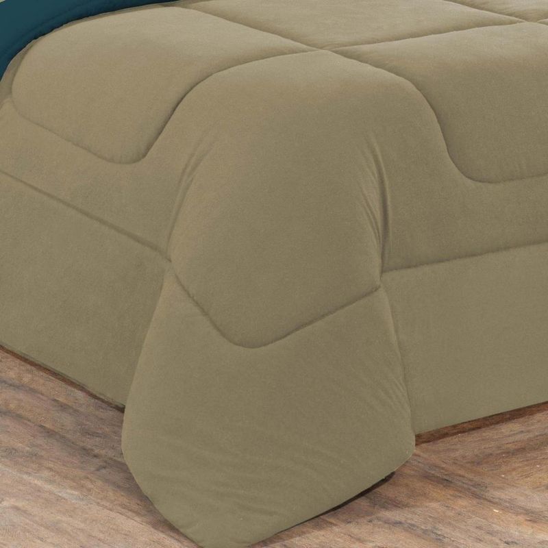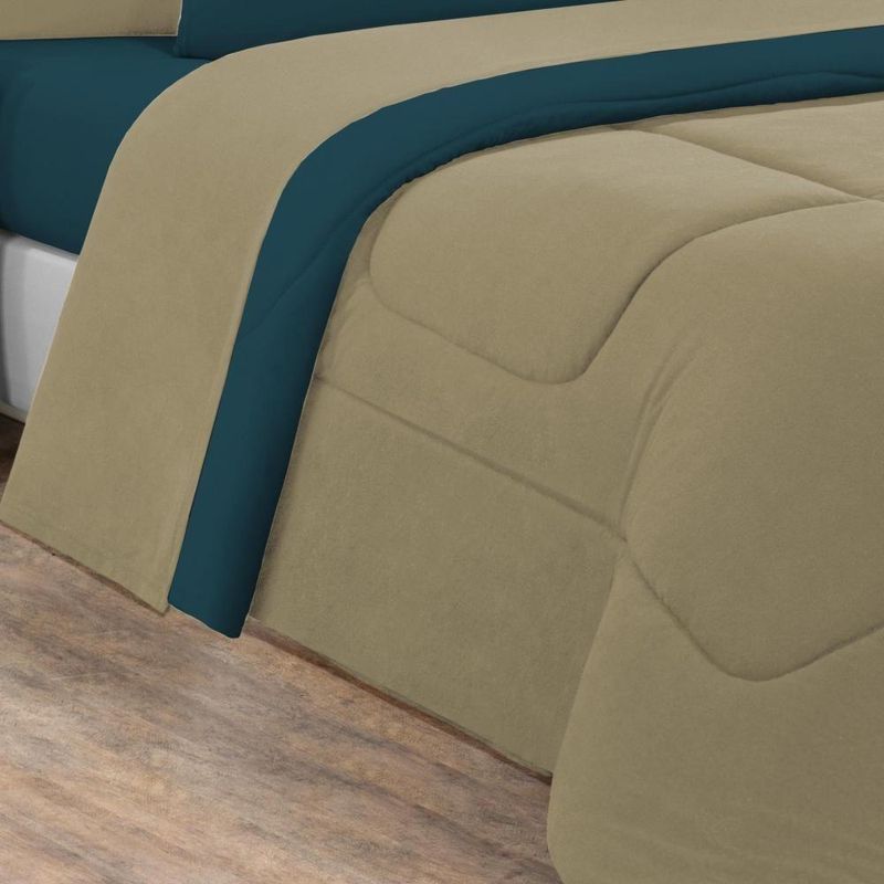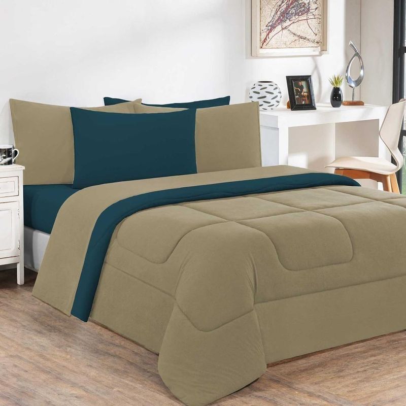 Kit Edredom + Jogo De Lençol Malha 100% Algodão Gran Moratta 7 Peças Casal - Avelã/azul Petróleo