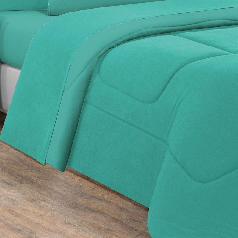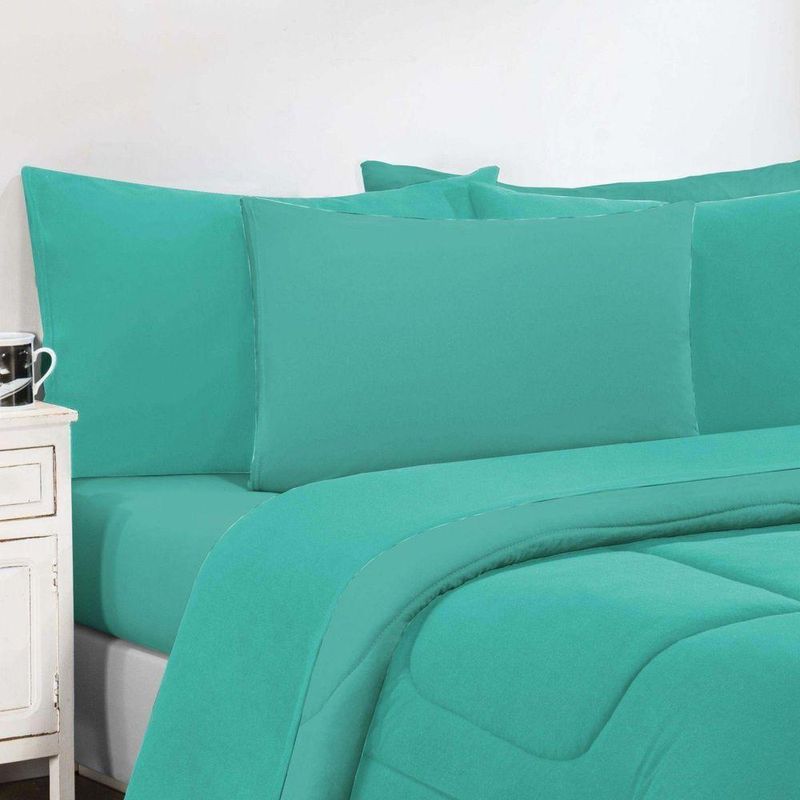 Kit Edredom + Jogo De Lençol Malha 100% Algodão Gran Moratta 7 Peças Casal - Verde Jade/verde Jade