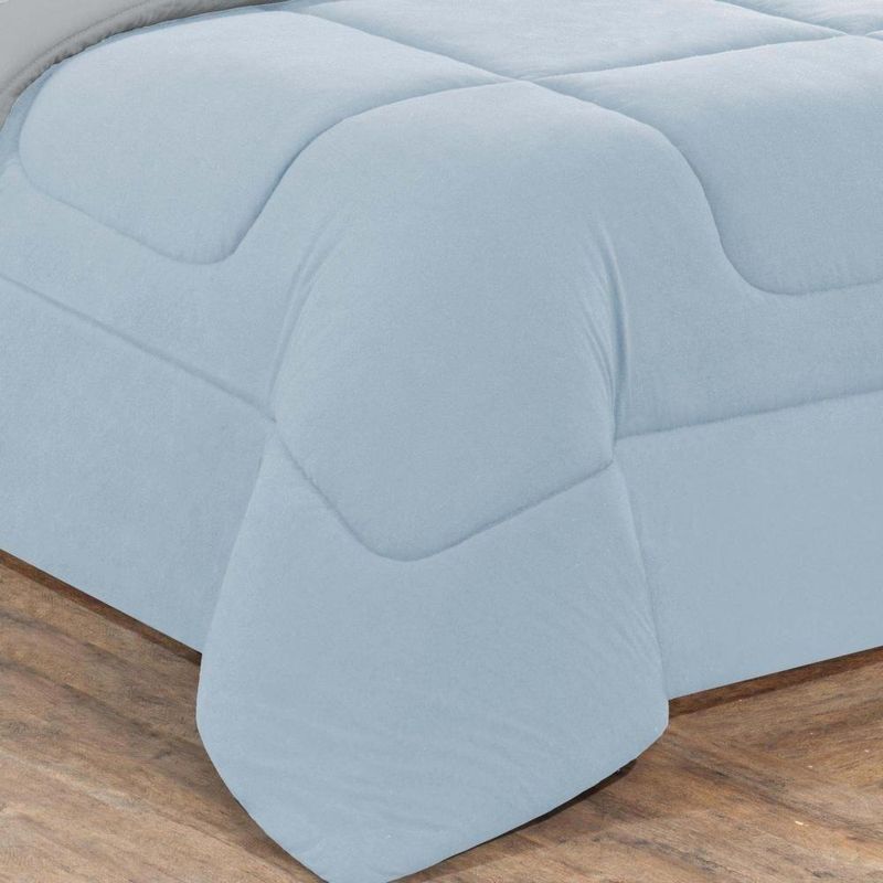 Malha 100% Algodão Fio 30/1 (130 Gramas)Marca: Enxovais Davy | Estampa: Não se Aplica | Medidas: 01 Edredom King Dupla Face Liso 2,50m x 2,90m02 Porta Travesseiros 70cm x 50cm01 Lençol de Cima 2,50m x 2,90m 01 Lençol Casal de Baixo para colchão 1,93m x 2,03m x 0,30m (Elástico na volta toda)02 Fronhas 70cm x 50cm | Número de Peças: 07 Peças | Material: Agodão | Cor Predominante: Azul Bebê/Cinza | Cama Indicada: King