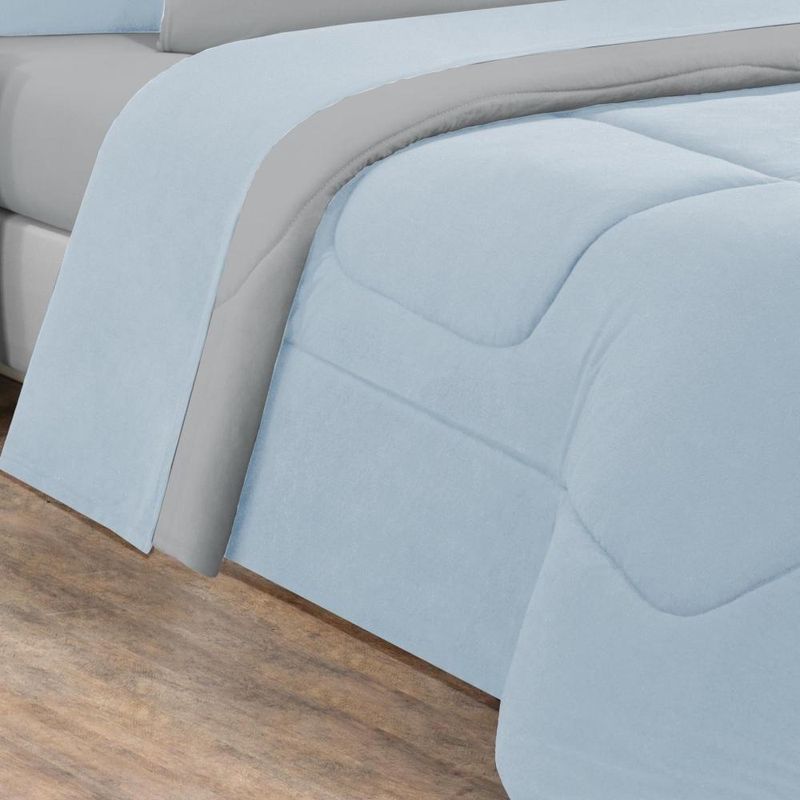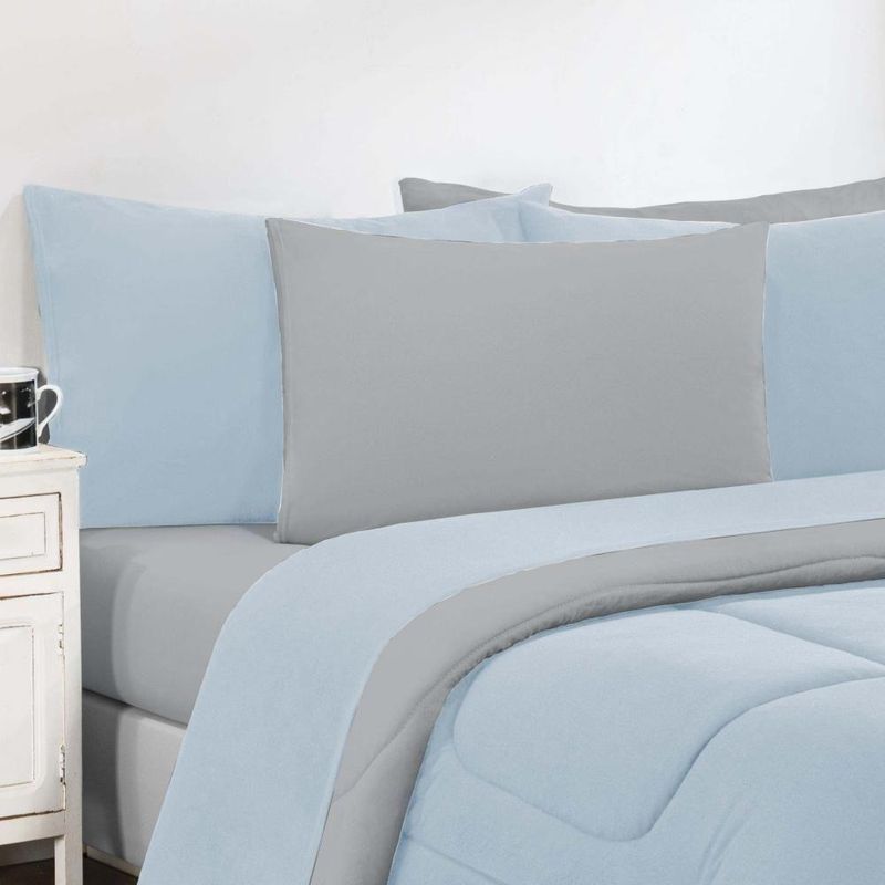 Kit Edredom + Jogo De Lençol Malha 100% Algodão Gran Moratta 7 Peças King - Azul Bebê/cinza