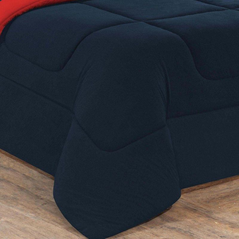 Kit Edredom Malha 100% Algodão Gran Moratta 2 Peças Solteiro - Azul Marinho/vermelho