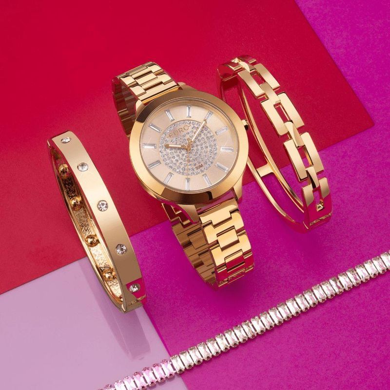 plaintext_description_meli - Kit Euro Feminino Soul Dourado - EU2035YVV/K4DOs kits Euro Soul saem do óbvio e trazem lindas combinações para os looks do dia dia. Relógios com novas caixas, com mostradores trabalhados e acessórios desenvovidos exclusivamente para a marca. Trazemos duas caixas redondas, uma em banho prata e uma em banho dourado e um modelo em caixa quadrada dourado para todos os estilos.