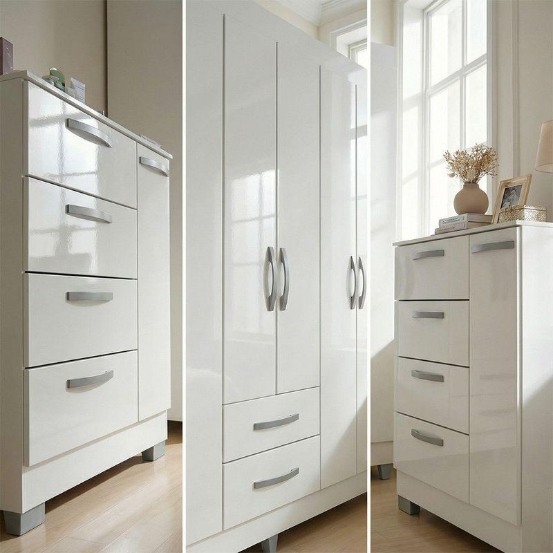 Kit Guarda Roupa Atenas E 2 Cômoda Poquema Branco