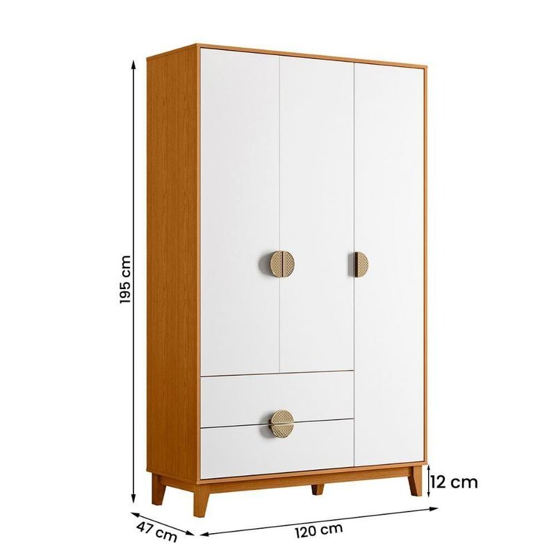 Dimensões do Guarda Roupa: 120 cm(L) x 195 cm(A) x 47 cm(P);