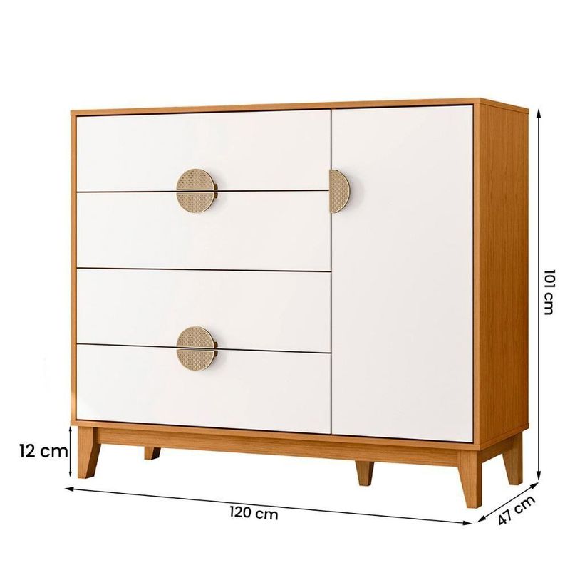 Dimensões da Cômoda: 120 cm(L) x 101 cm(A) x 47 cm(P);
