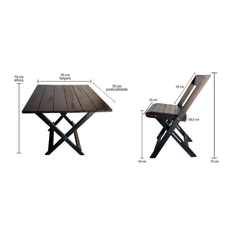 Kit Mesa Com 2 Cadeiras Dobráveis Em Eucalipto Natural Preto