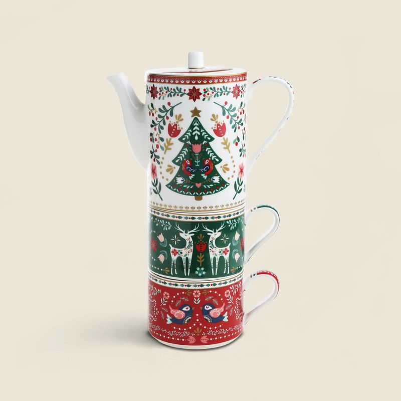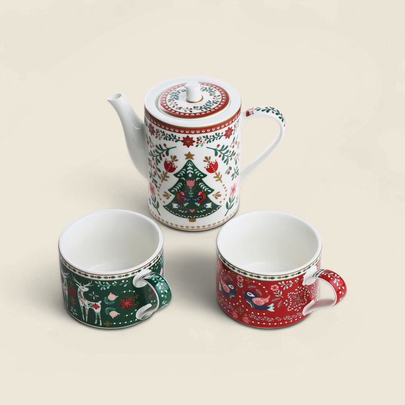 Celebre os momentos mais aconchegantes do Natal com o charme do Kit Folk Joy. Composto por peças em porcelana de alta qualidade e design festivo, este conjunto é perfeito para servir café ou chá com estilo e delicadeza. Os detalhes florais em tons de vermelho, verde e dourado evocam a magia das festas, tornando cada pausa uma celebração.Medidas: