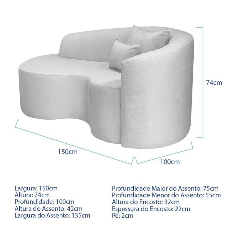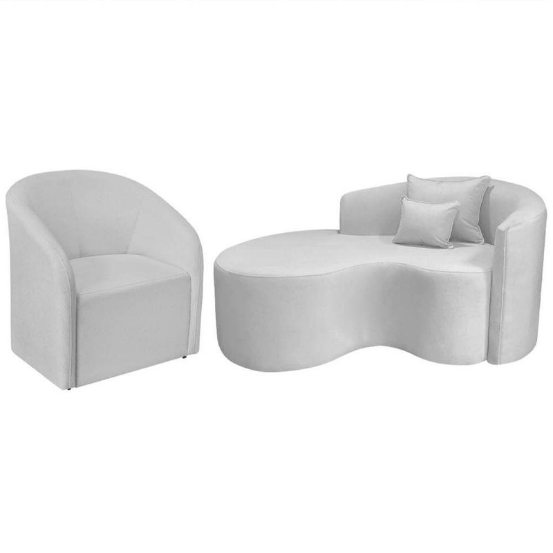 Kit Recamier Curvo Sala De Estar Inglaterra 150cm Lado Esquerdo E Poltrona Orgânica Luxo Luiza Max Bouclé Branco