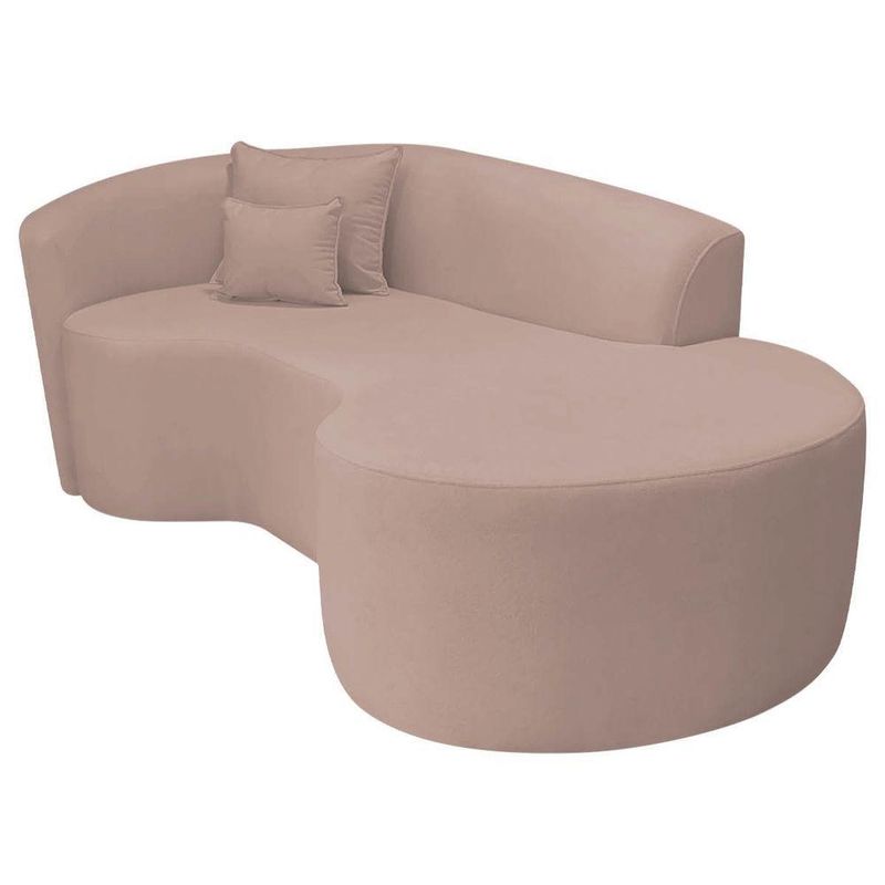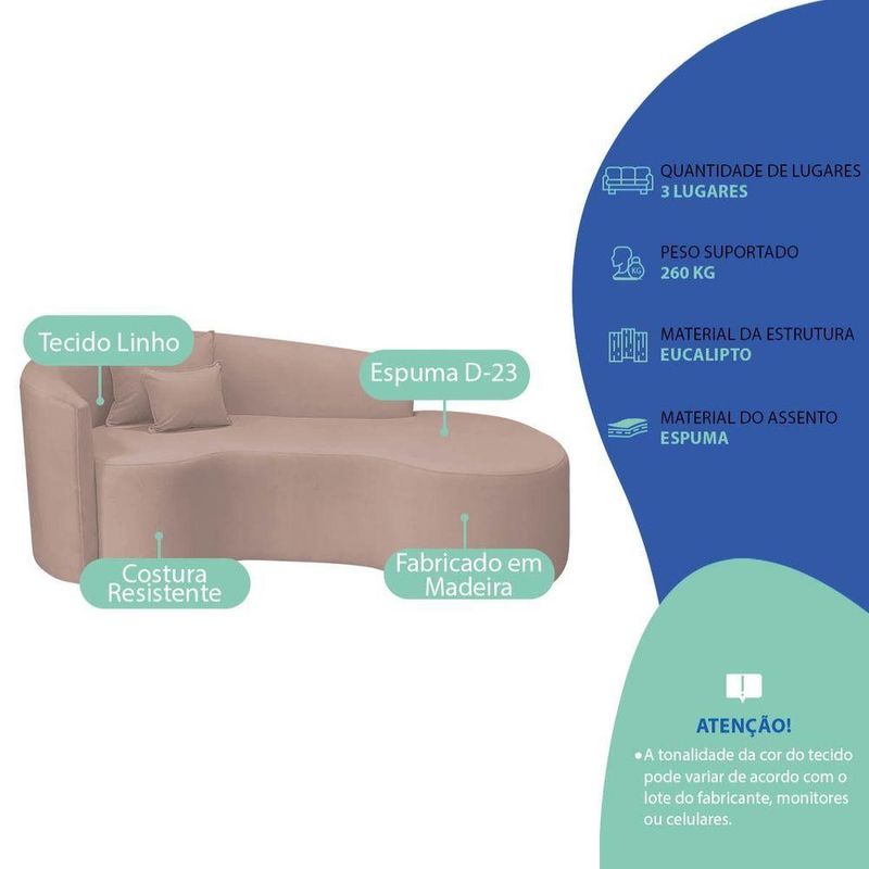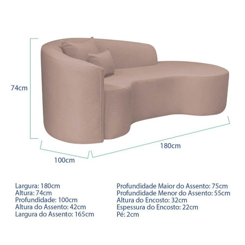 Kit Recamier Curvo Sala De Estar Inglaterra 180cm Lado Direito E Poltrona Orgânica Luxo Amore Linho Rosê