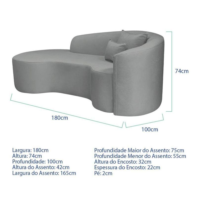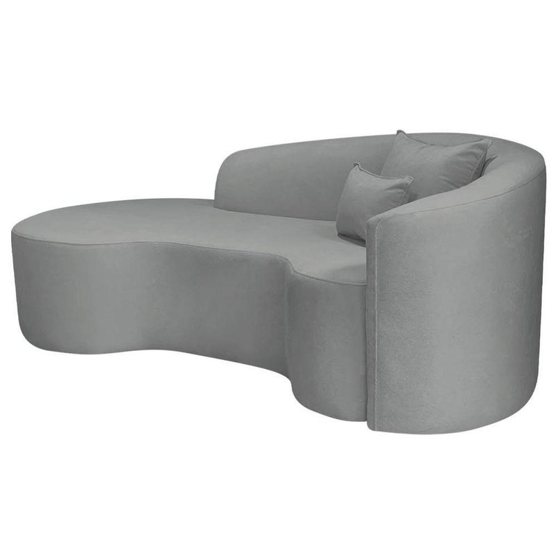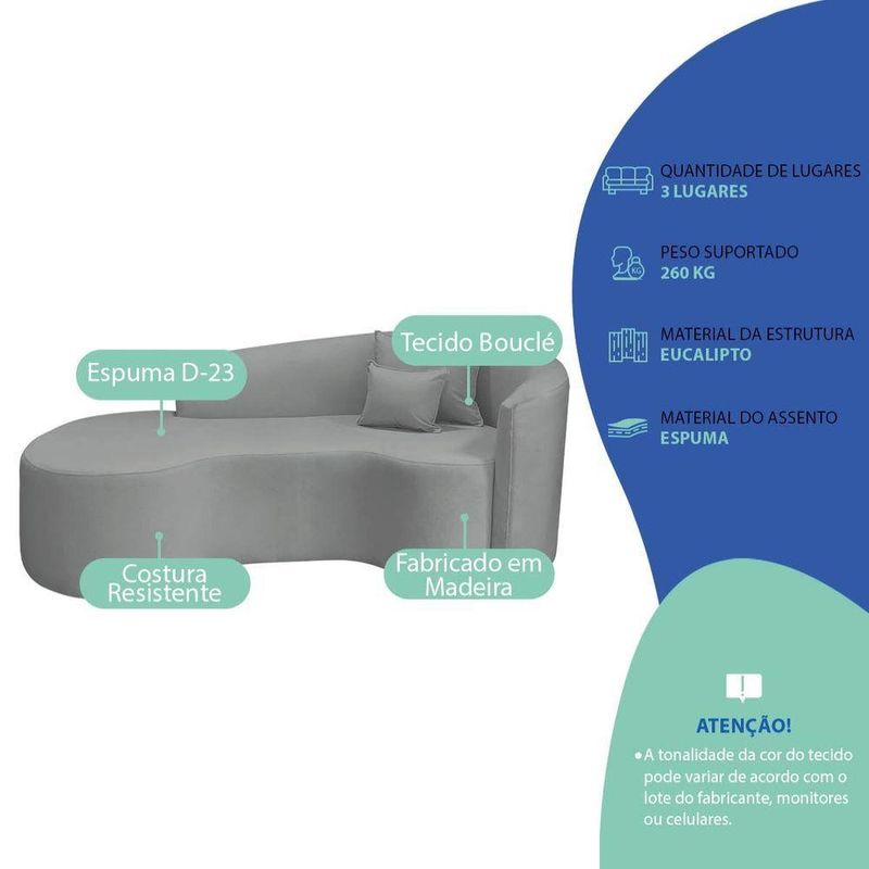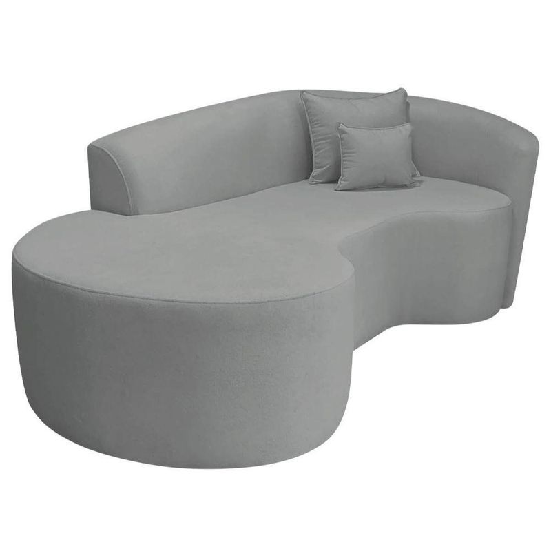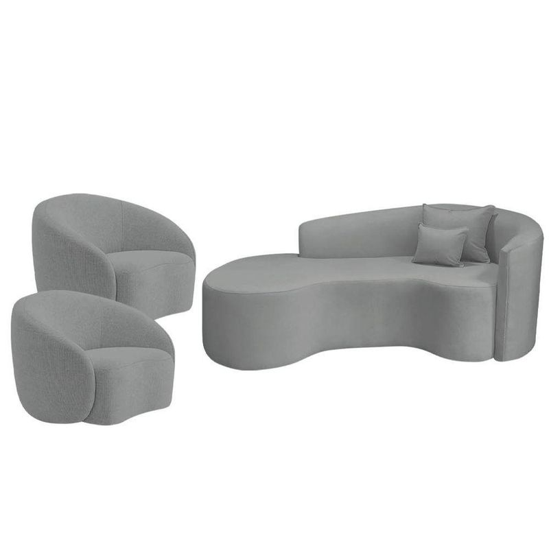 Kit Recamier Curvo Sala De Estar Inglaterra 180cm Lado Esquerdo E 2 Poltronas Orgânica Luxo Amore Bouclé Cinza