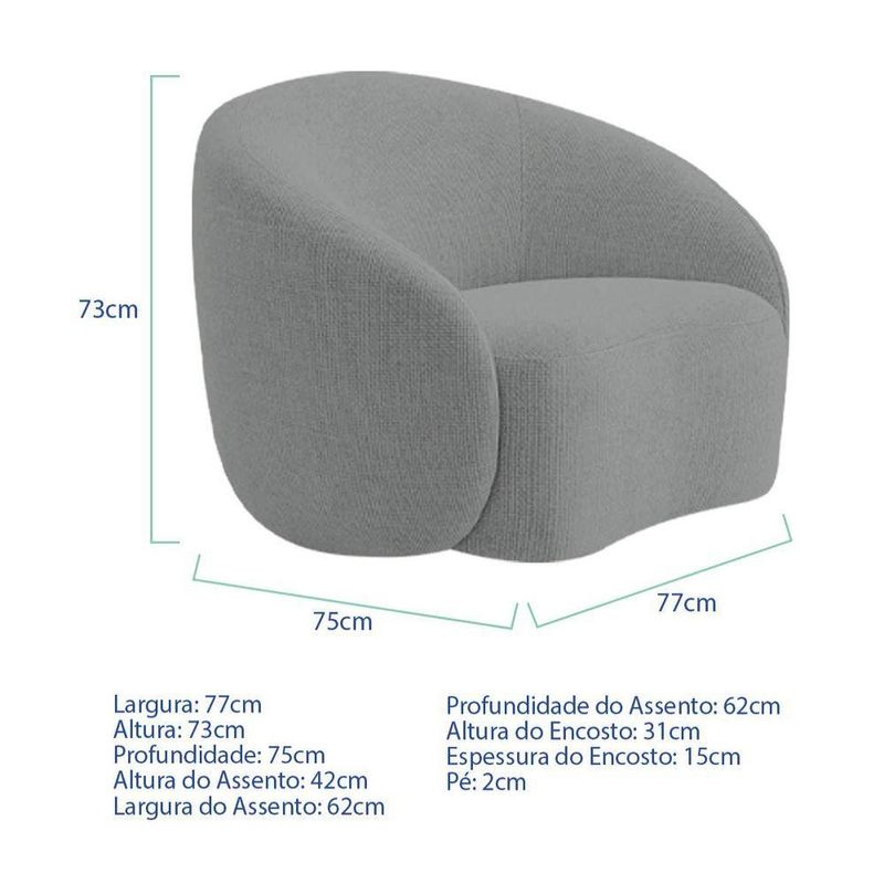 - Peso Suportado: 260 Kg.Especificações Técnicas da Poltrona Amore:Largura: 77cm